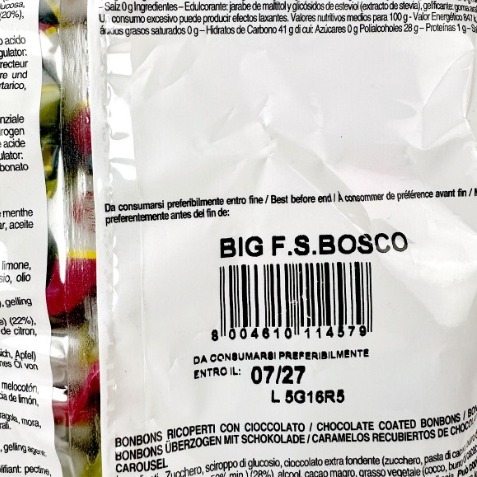 品名: 義大利多福綜合莓果軟糖 箱入數: 條碼 8004610114579 貨號: E7-208 成份: 野莓風味成份: 砂糖,葡萄糖果糖糖漿,葡萄糖漿,濃縮果汁(野莓,),果膠,檸檬酸,調味劑(檸檬酸鈉),天然香料。