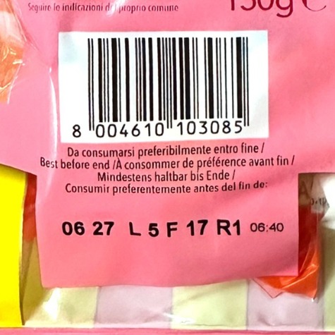 檸檬風味成份: 砂糖,葡萄糖果糖糖漿,葡萄糖漿,濃縮果汁(檸檬,蘋果),果膠,檸檬酸,調味劑(檸檬酸鈉),檸檬精油,天然香料 。